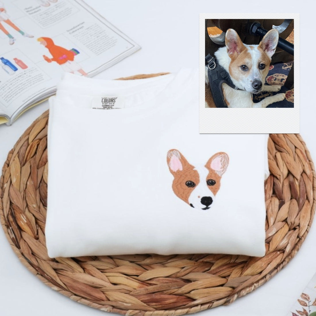 Celebrate your beloved dog with our personalized dog portrait t-shirts featuring detailed embroidered dog faces...