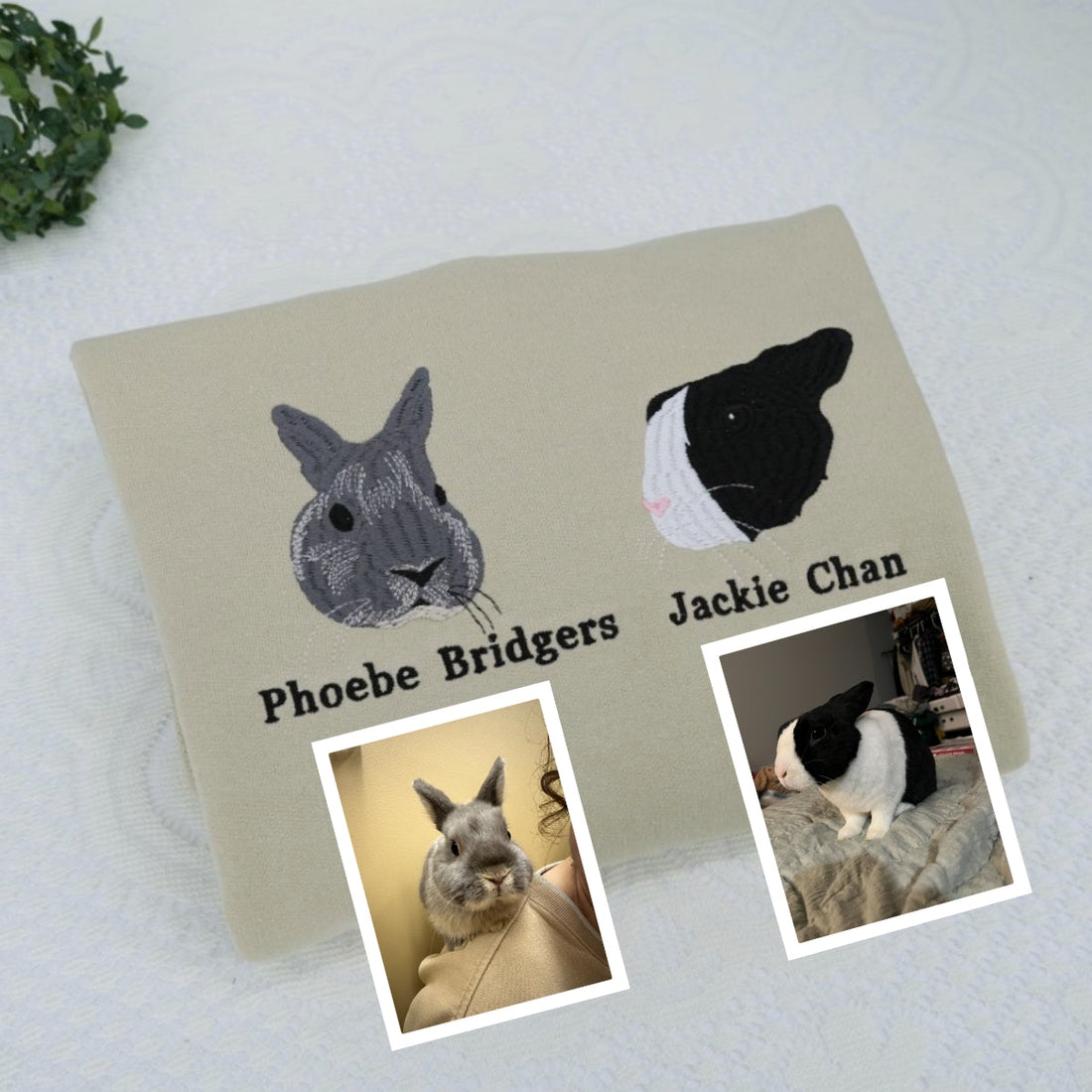 Custom Pet Portrait Hoodies - Any Pet Face Embroidered Sweatshirts - Personalized Pet Parent Gift