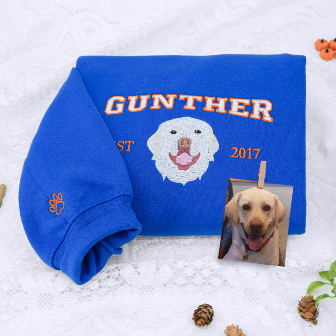Custom Pet Portrait Sweatshirts - Dog Name Varsity EST Embroidered Shirts - Dog Lover Gift