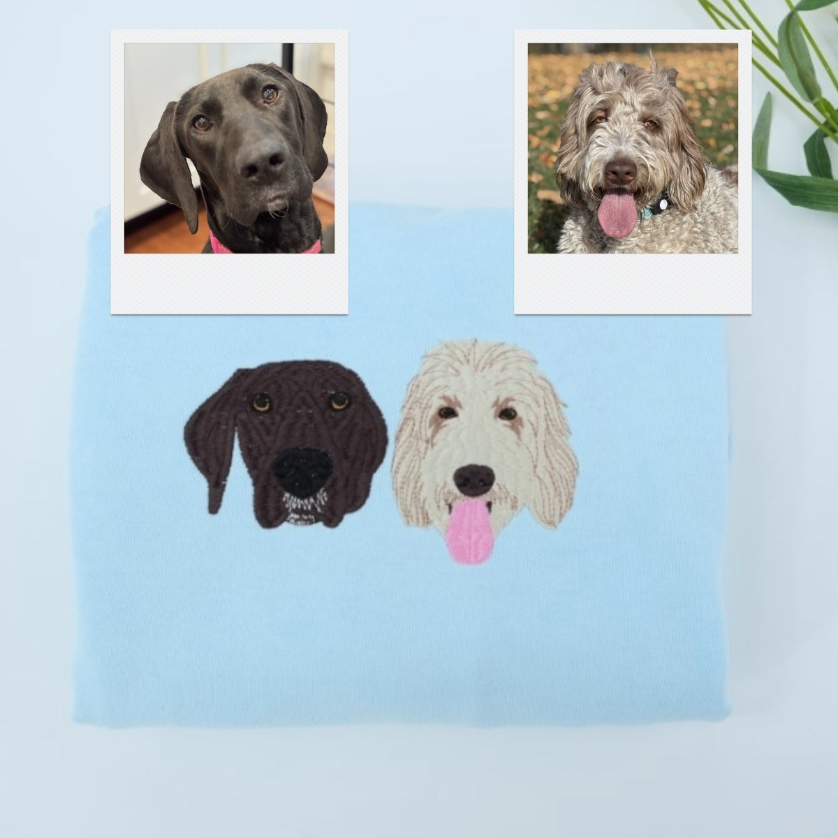 Celebrate your beloved dog with our personalized dog portrait hoodies featuring breed-specific embroidered faces and custom name details. Each sweatshirt showcases detailed dog portraits that capture your pet's unique breed characteristics, complete with adorable paw print accents. Perfect for dog moms, dog dads, and anyone who wants to honor their furry family member. Available in beautiful colors with premium embroidery that captures every detail from ears to expressions.